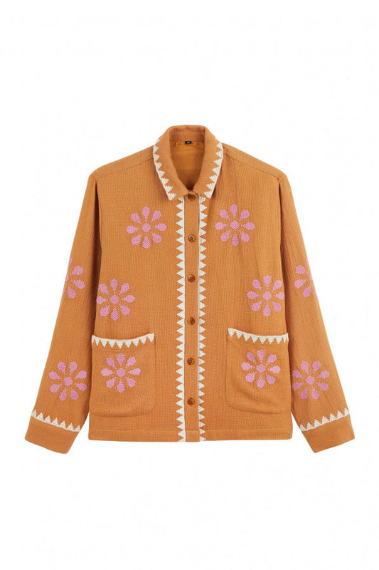 Embroidered patchwork pattern jacket