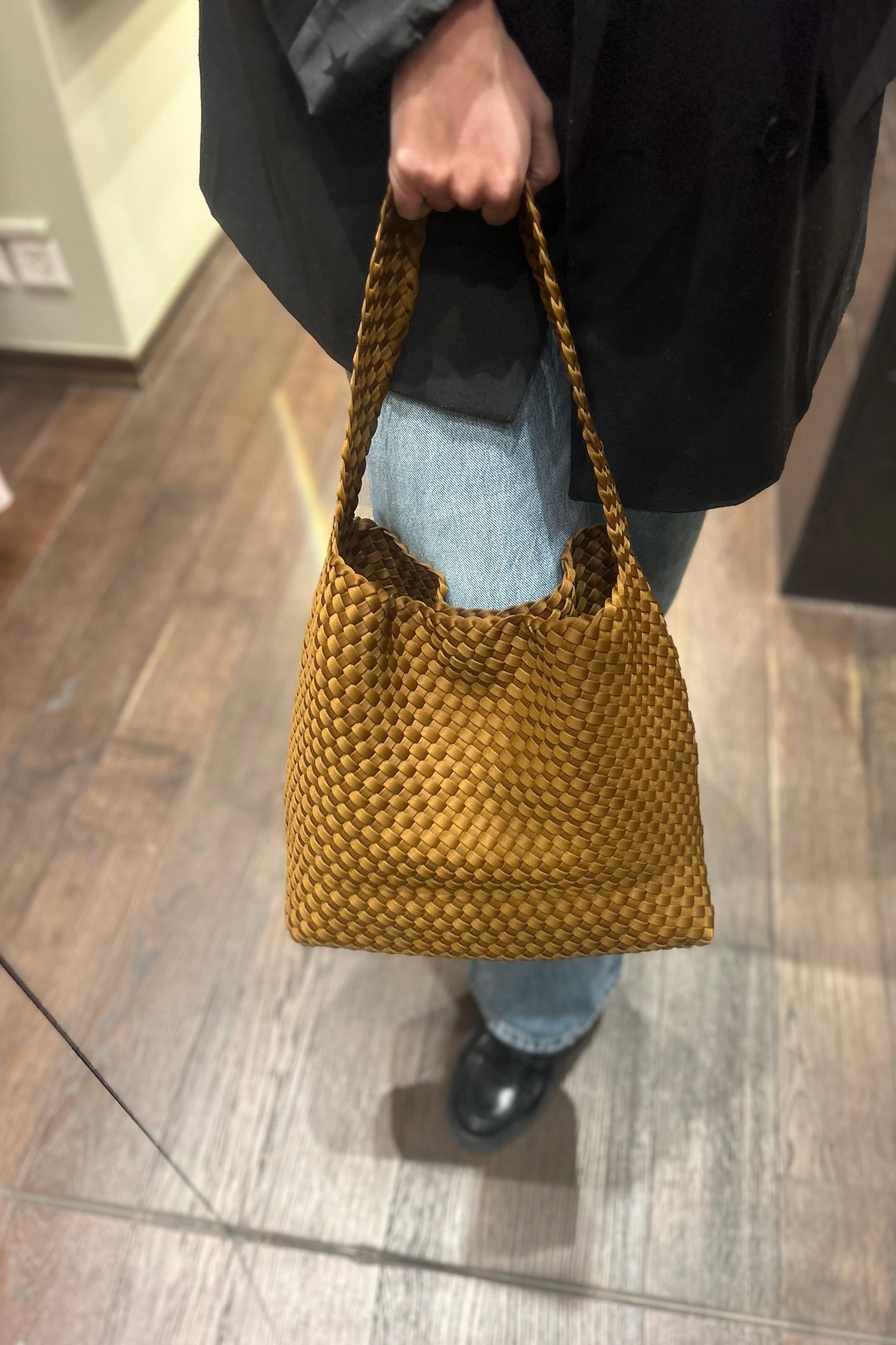 Handmade Woven Bucket Bag – Camel